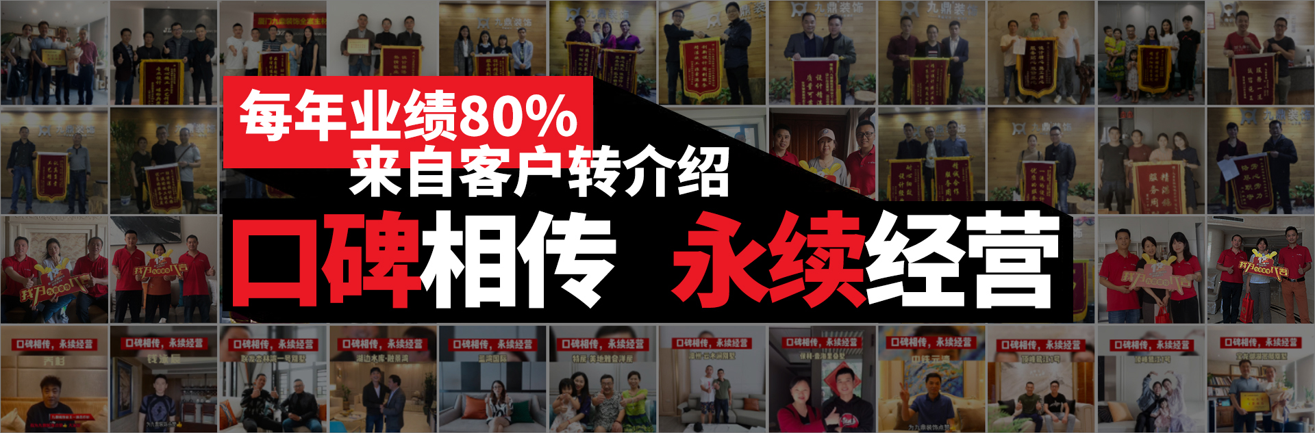 九鼎裝飾秉承“口碑相傳,永續(xù)經(jīng)營”的經(jīng)營理念,力求達到“設計零缺憾、施工 零缺點、材料零抱怨、品質零投訴”的“四零”服務